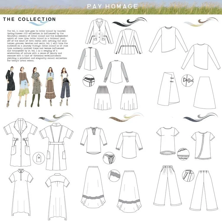 With market and trend research, I developed a brand from concept to reality. It was inspired by an adventurous trip to Sable Island National Park Reserve. The intent of the brand was to create collections that do more than clothe a woman’s body. Pay Homage by Annabel aimed to inspire and inform the customer of some of Canada’s national treasures and iconic landscapes. While this is done in part through style and design, Pay Homage by Annabel also recognized the importance of supporting the organizations that work to support our national heritage and cherished landscapes. As such, a portion of the proceeds from sales were to be donated to selected non-profits. For Volumn 1 collection, the beneficiary organization was to be the Friends of Sable Island Society. This non-profit organization strives to advocate for the island through education, interpretation, and preservation programs.