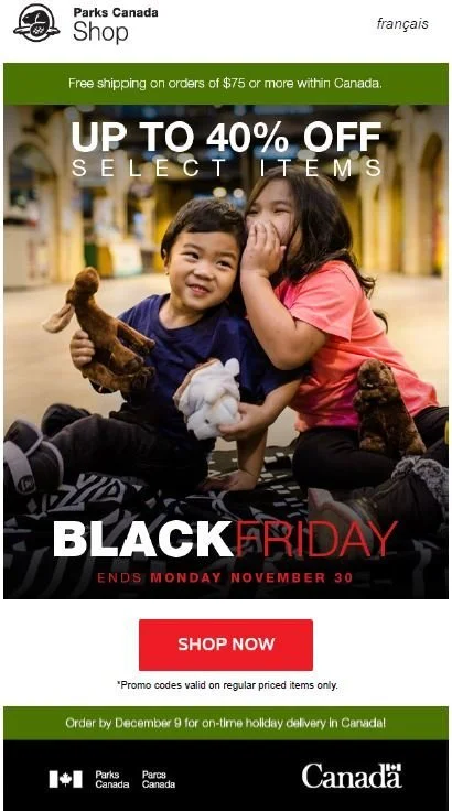 Collaborated with the Parks Canada Brand team, and graphic designer to develop the Parks Canada Shop e-blast for Black Friday.