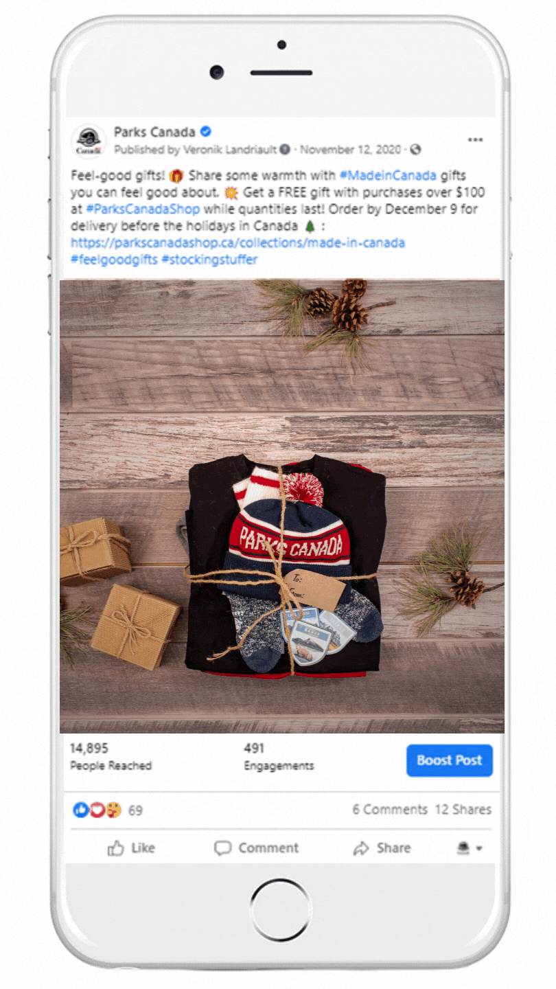 Due to past campaign insights, pivoted from focusing resources on Parks Canada Shop social media content to leveraging Parks Canada Agency’s social media networks. Re-posted Parks Canada Agency social media content on Parks Canada Shop channel.