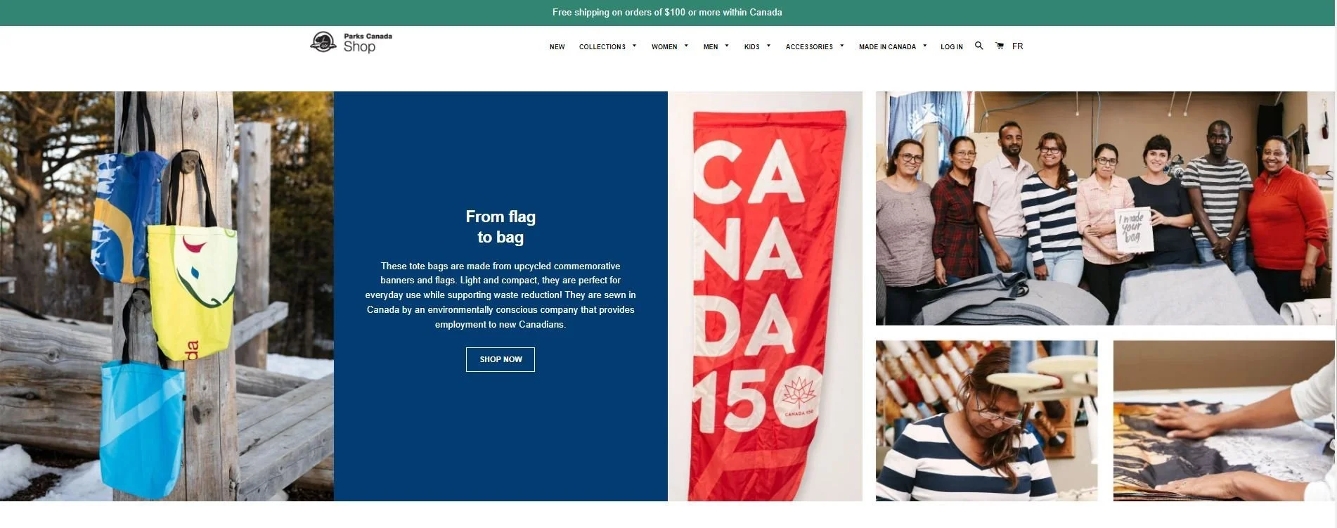 At the end of Canada 150 celebrations, Parks Canada was left with several promotional flags and banners. As part of their waste-reduction initiative we, as their official merchandise licensee, were challenged to provide solutions for repurposing these materials into products that could be sold in Parks Canada gift shops and the e-commerce store. Collaborating with the Parks Canada Brand team, we developed one-of-a kind upcycled tote bags. These bags were manufactured in Ottawa, by Eco-Equitable, “a non-profit organization that provides a bridge to social and economic integration for people in need, especially women, while greening the community.” I developed a recycled paper hangtag that detailed the positive Flag to Bag story and added it to the product.